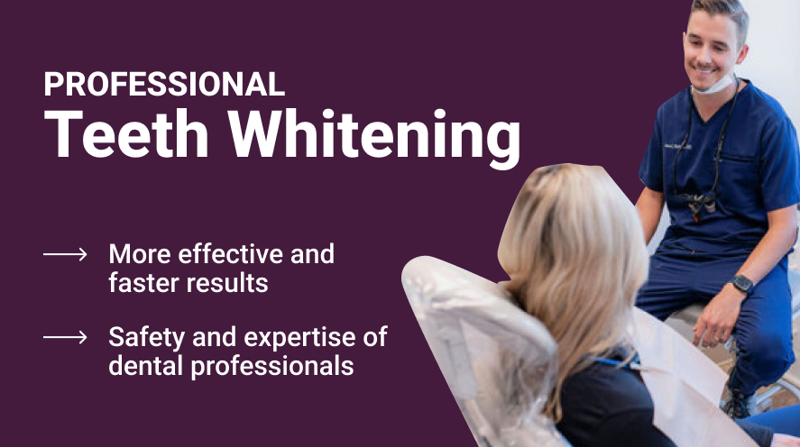 While these in-home teeth whitening strips may be more effective than whitening toothpaste or baking soda, they still don’t match the effectiveness and safety of professional teeth whitening.
